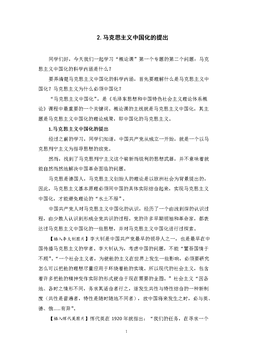 毛泽东思想是马克思主义中国化的第一大理论成果