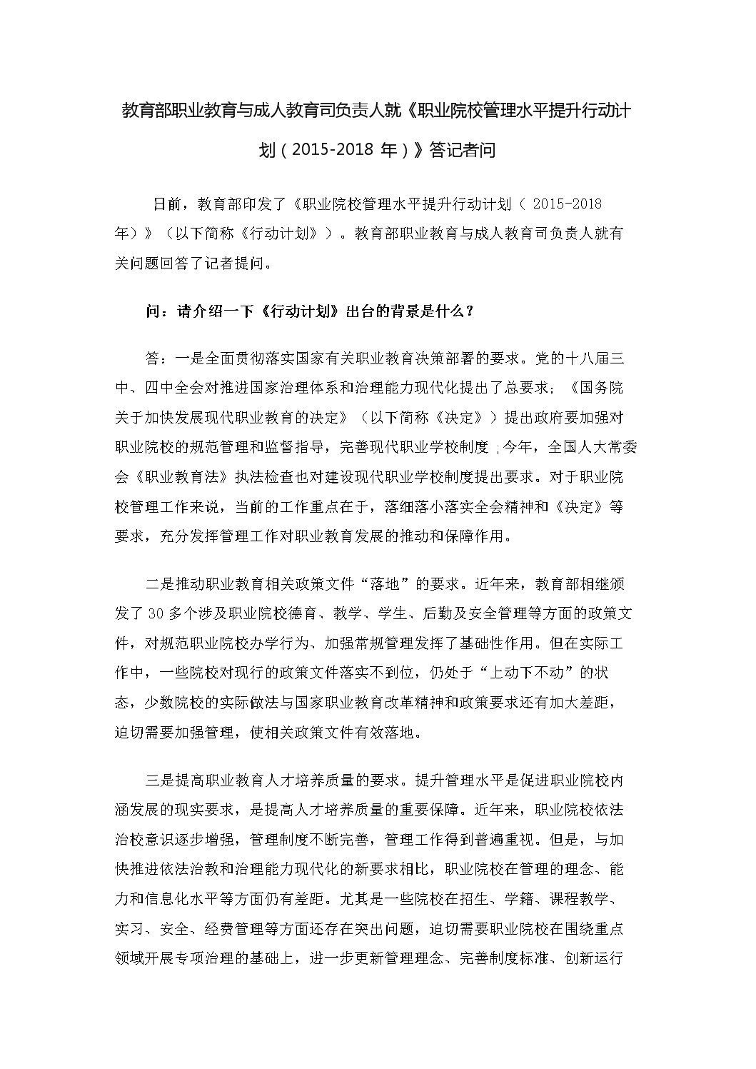 《职业院校管理水平提升行动计划(2015-2018年)》ok