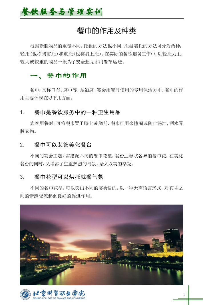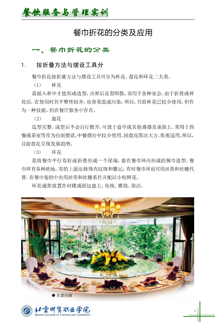 餐饮服务与管理实训_02章_02节_餐巾折花