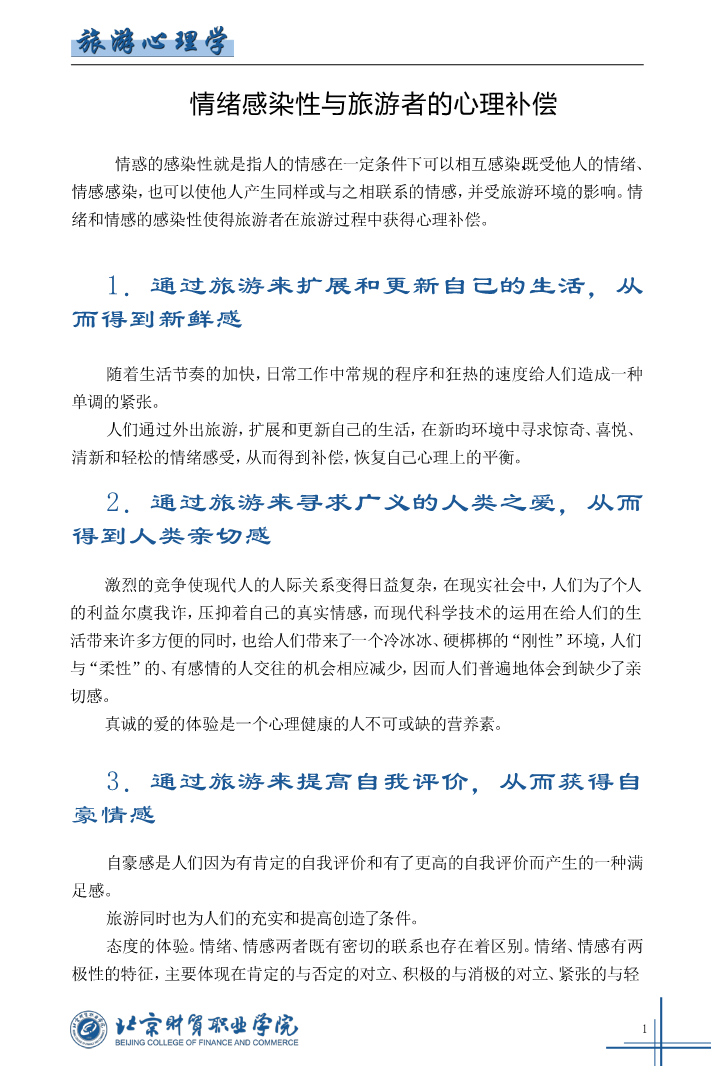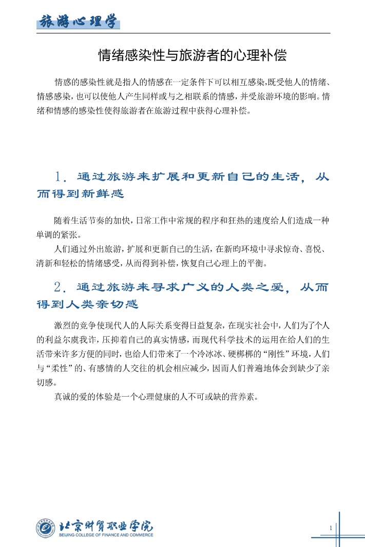 情绪感染性与旅游者的心理补偿