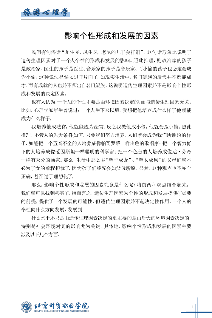 影响个性形成和发展的因素