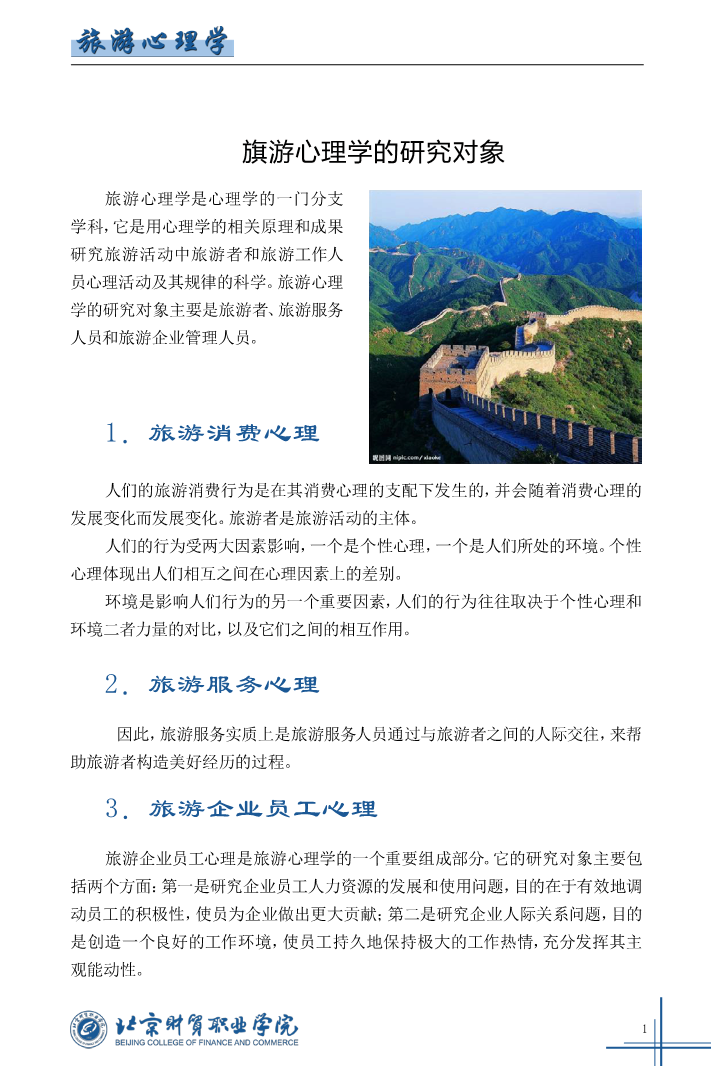 旅游业的发展需要心理学
