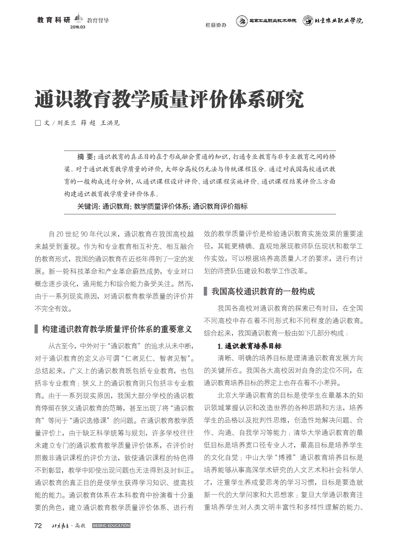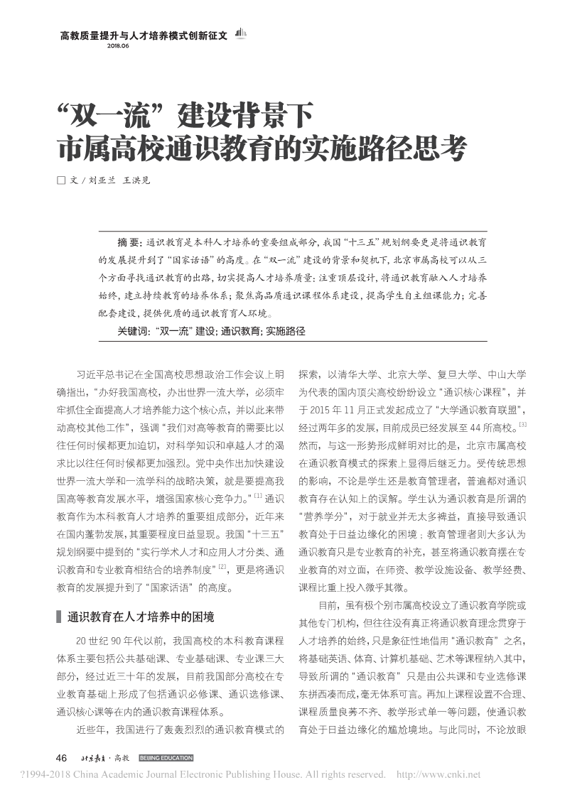116.“双一流”建设背景下市属高校通识教育的实施路径思考