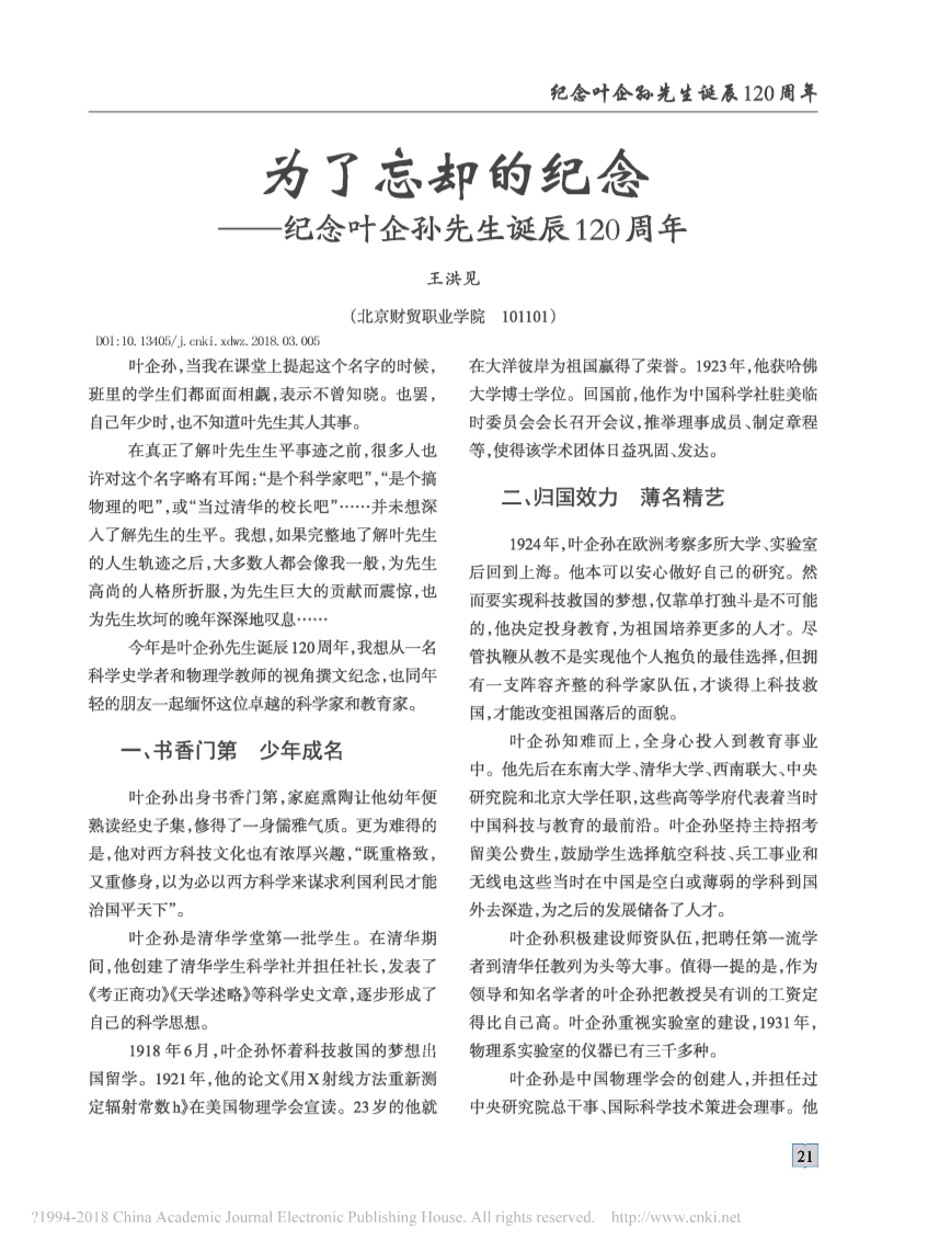 113.为了忘却的纪念-纪念叶企孙先生诞辰120周年