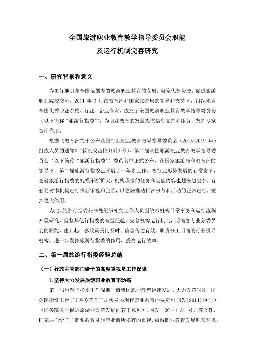 122.全国旅游职业教育教学指导委员会职能及运行机制完善研究