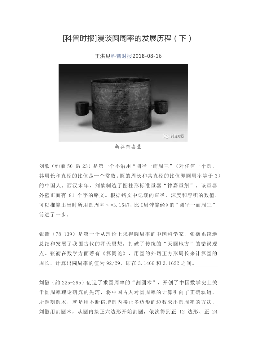 112.漫谈圆周率的发展历程(下)