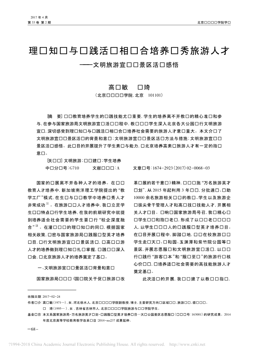 75.理论知识与实践活动相结合培养优秀旅游人才