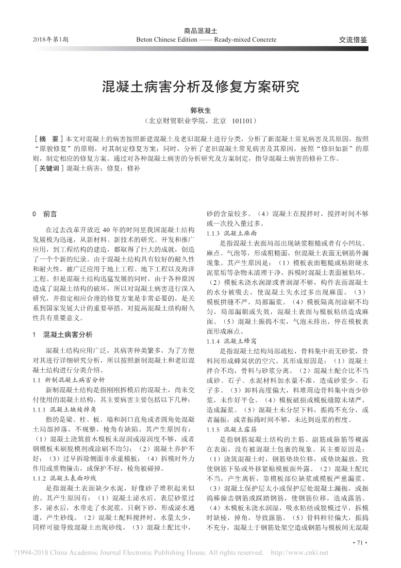 37.混凝土病害分析及修复方案研究_郭秋生