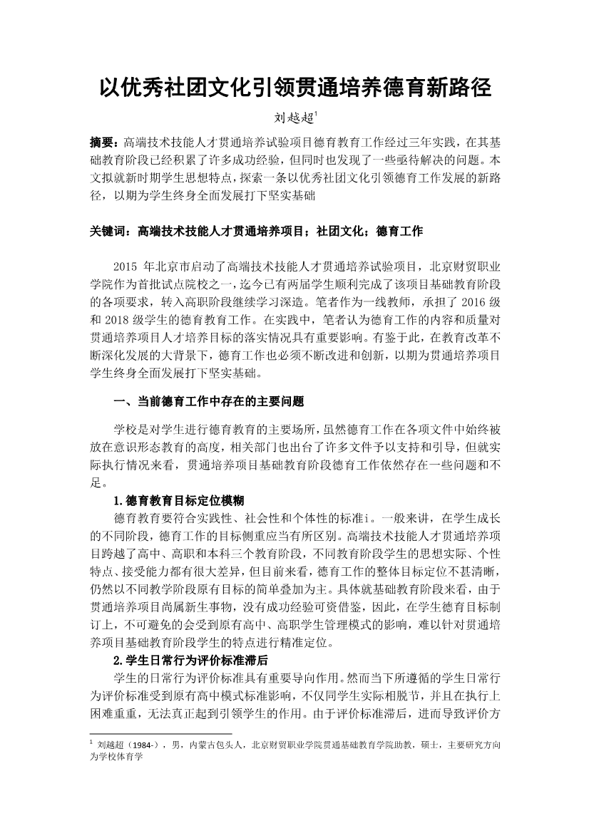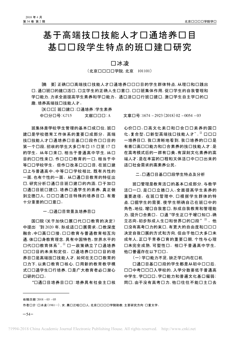 26.基于高端技术技能人才贯通培养项目基础阶段学生特点的班级建设研究_韩冰凌