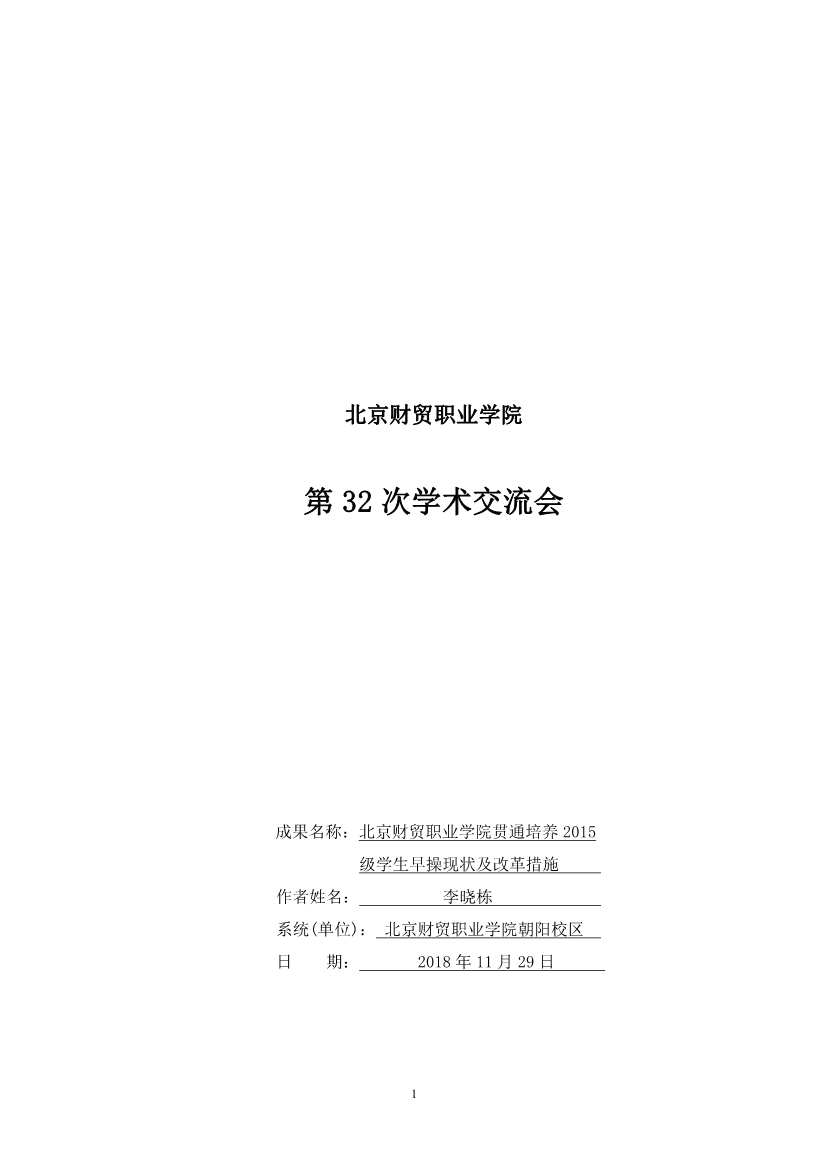 33.北京财贸职业学院贯通培养2015级学生早操现状及改革措施