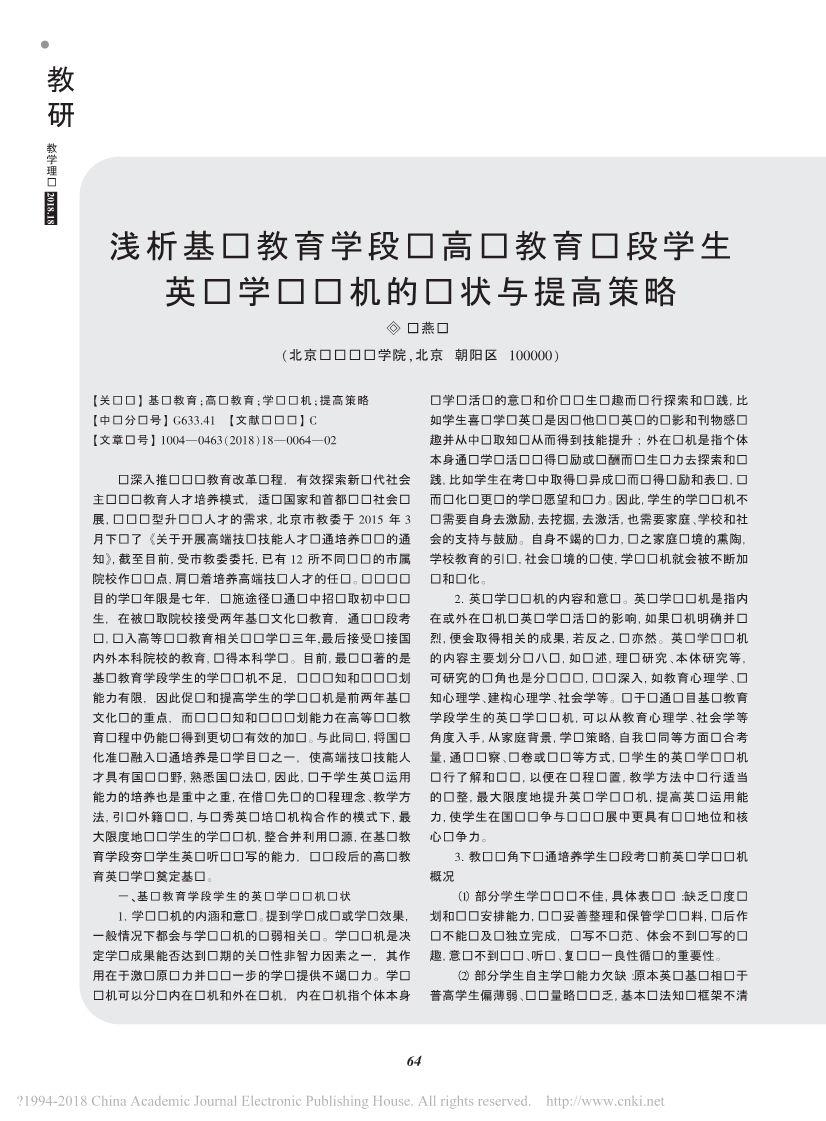 27.浅析基础教育学段转高职教育阶段学生英语学习动机的现状与提高策略_陈燕华