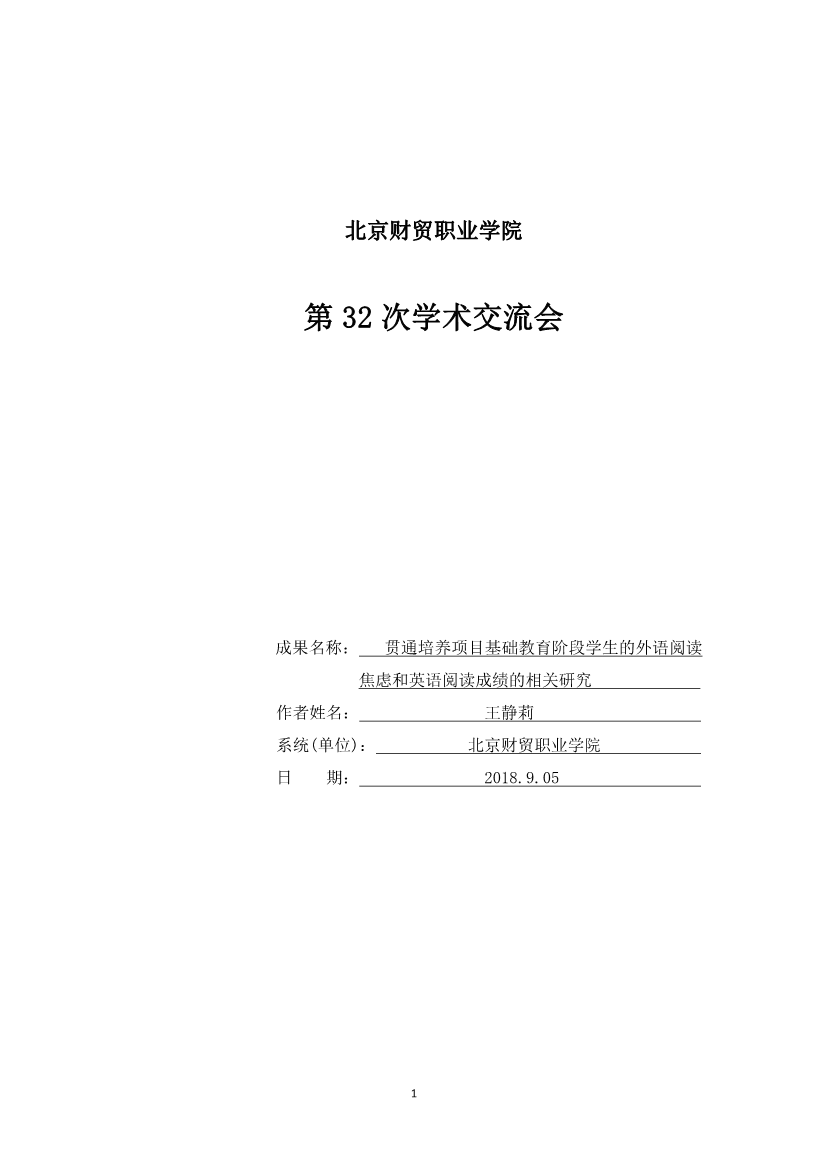 31.贯通培养项目基础教育阶段学生的外语阅读焦虑和英语阅读成绩的相关研究