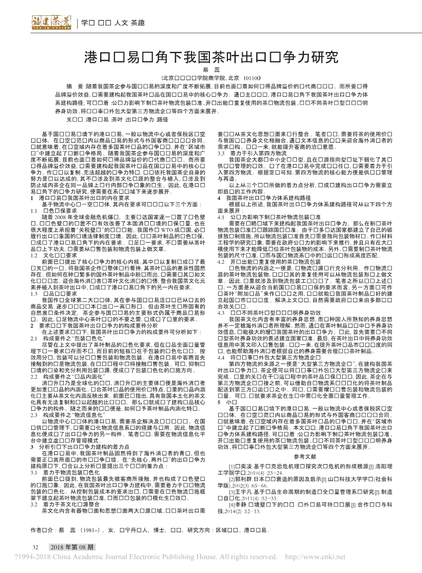 59.港口贸易视角下我国茶叶出口竞争力研究_蔡蕊