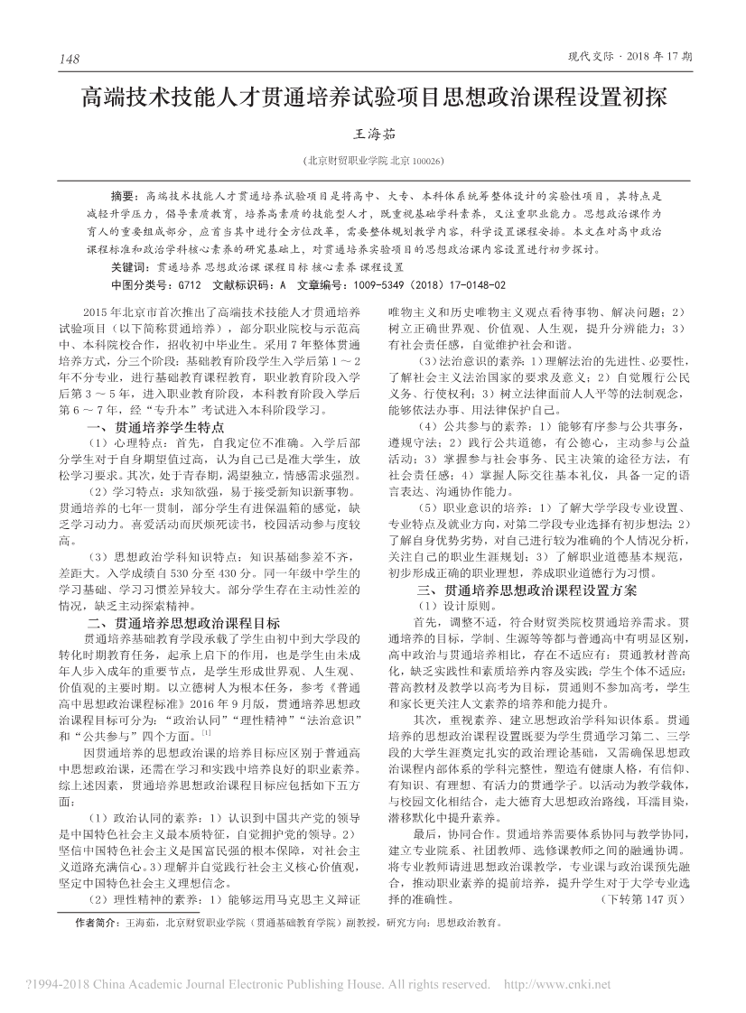 39.高端技术技能人才贯通培养试验项目思想政治课程设置初探_王海茹