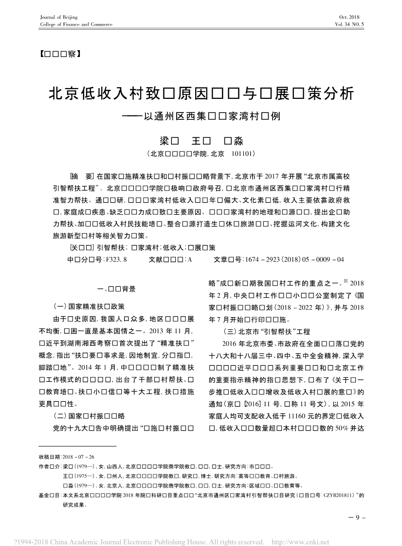 36.北京低收入村致贫原因调查与发展对策分析—以通州区西集镇吕家湾镇为例