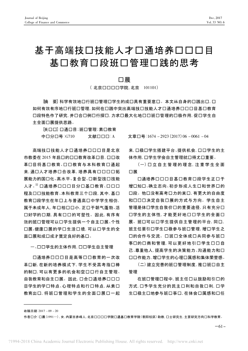 4.基于高端技术技能人才贯通培养试验项目基础教育阶段班级管理实践的思考