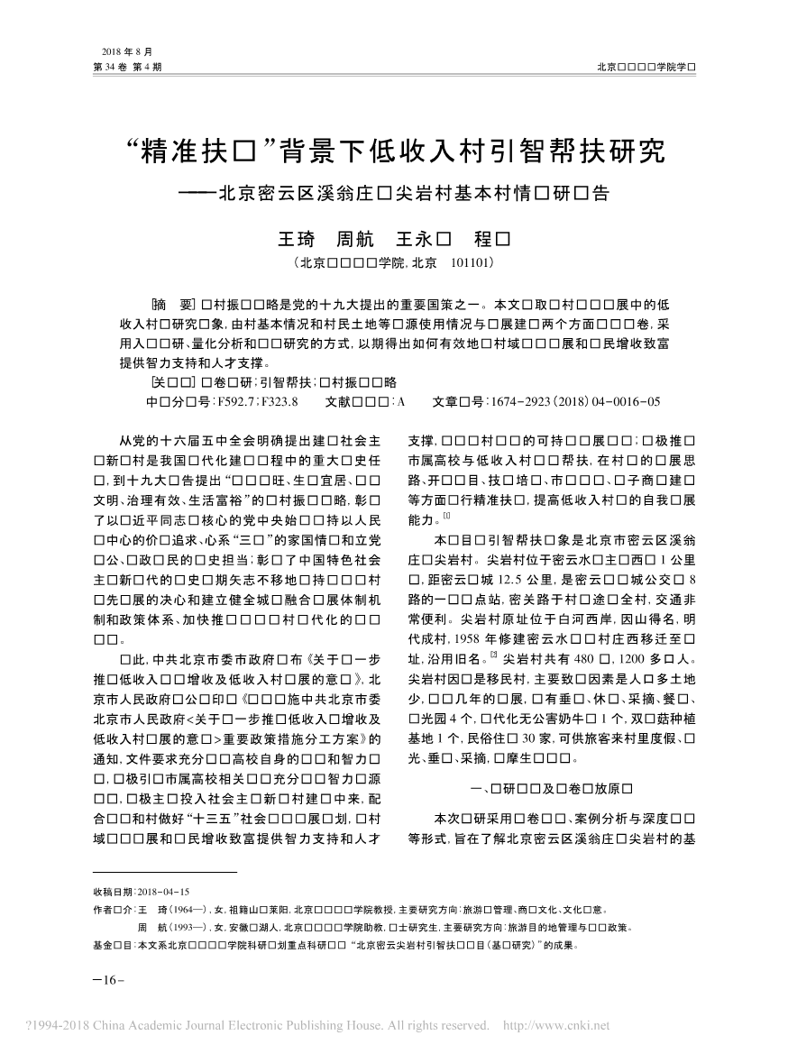 12.“精准扶贫”背景下低收入村引智帮扶研究——北京密云区溪翁庄镇尖岩村基本村情调研报告