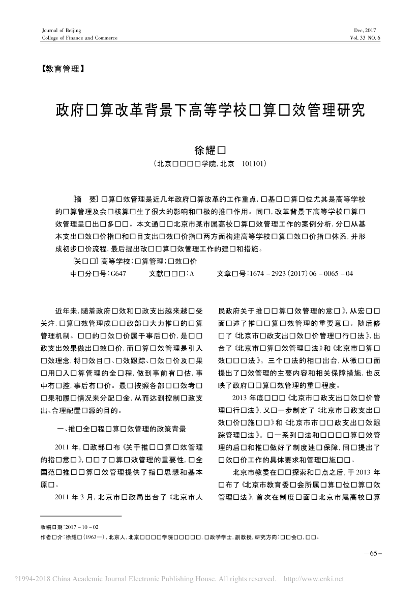 27.政府预算改革背景下高等学校预算绩效管理研究