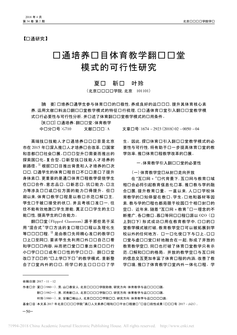 20.贯通培养项目体育教学翻转课堂模式的可行性研究_夏伟