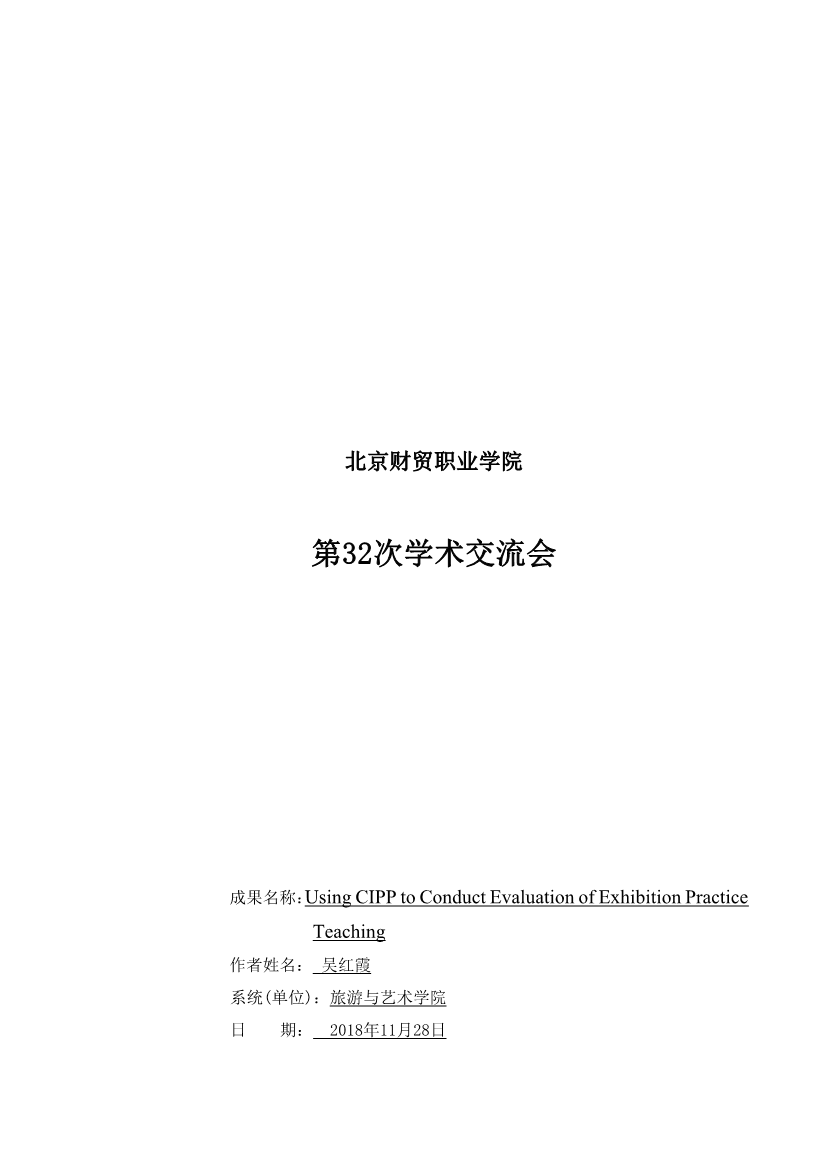 29.Using CIPP to Conduct Evaluation of Exhibition Practice Teaching吴红霞