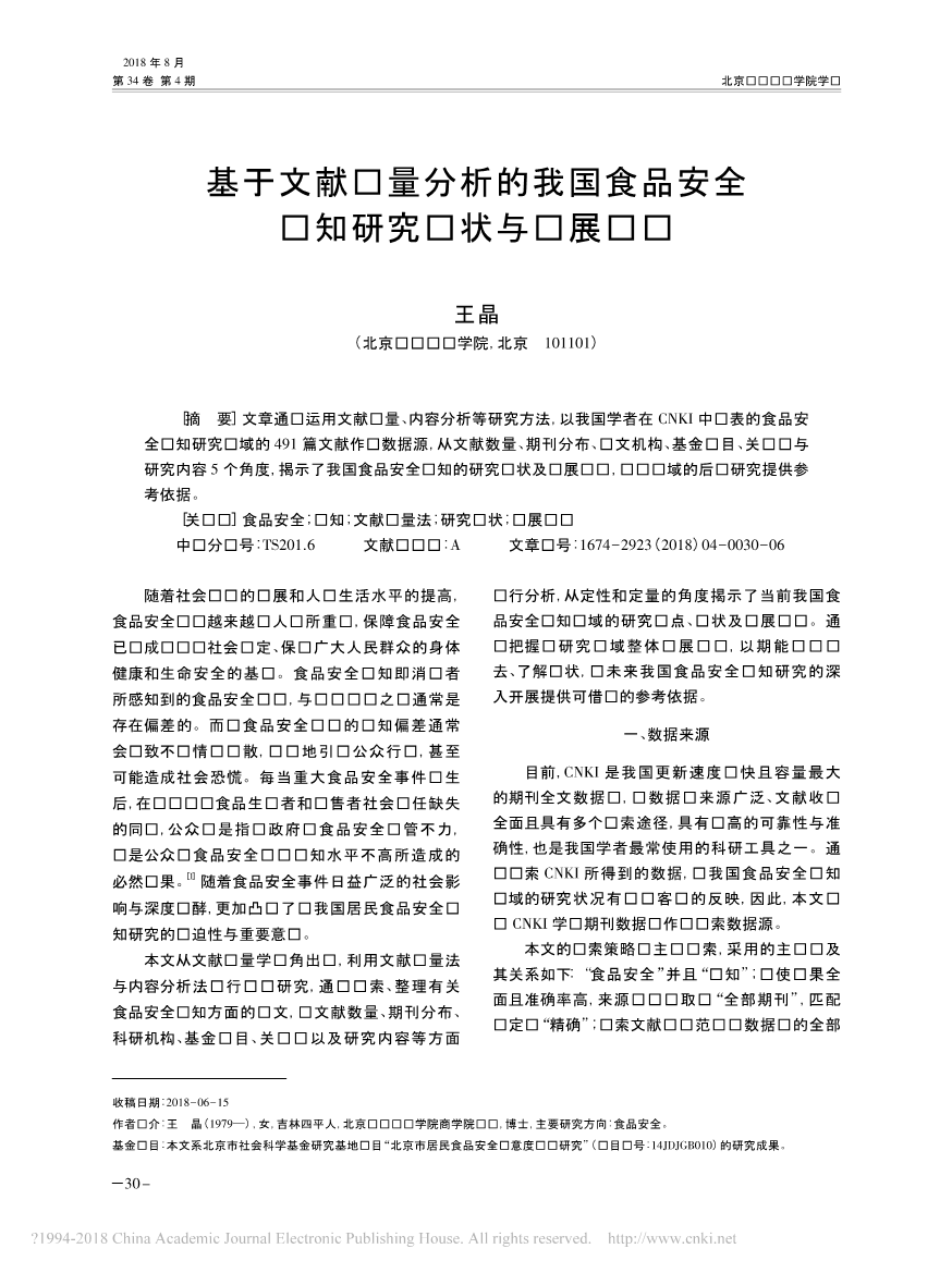30.基于文献计量分析的我国食品安全认知研究现状与发展趋势