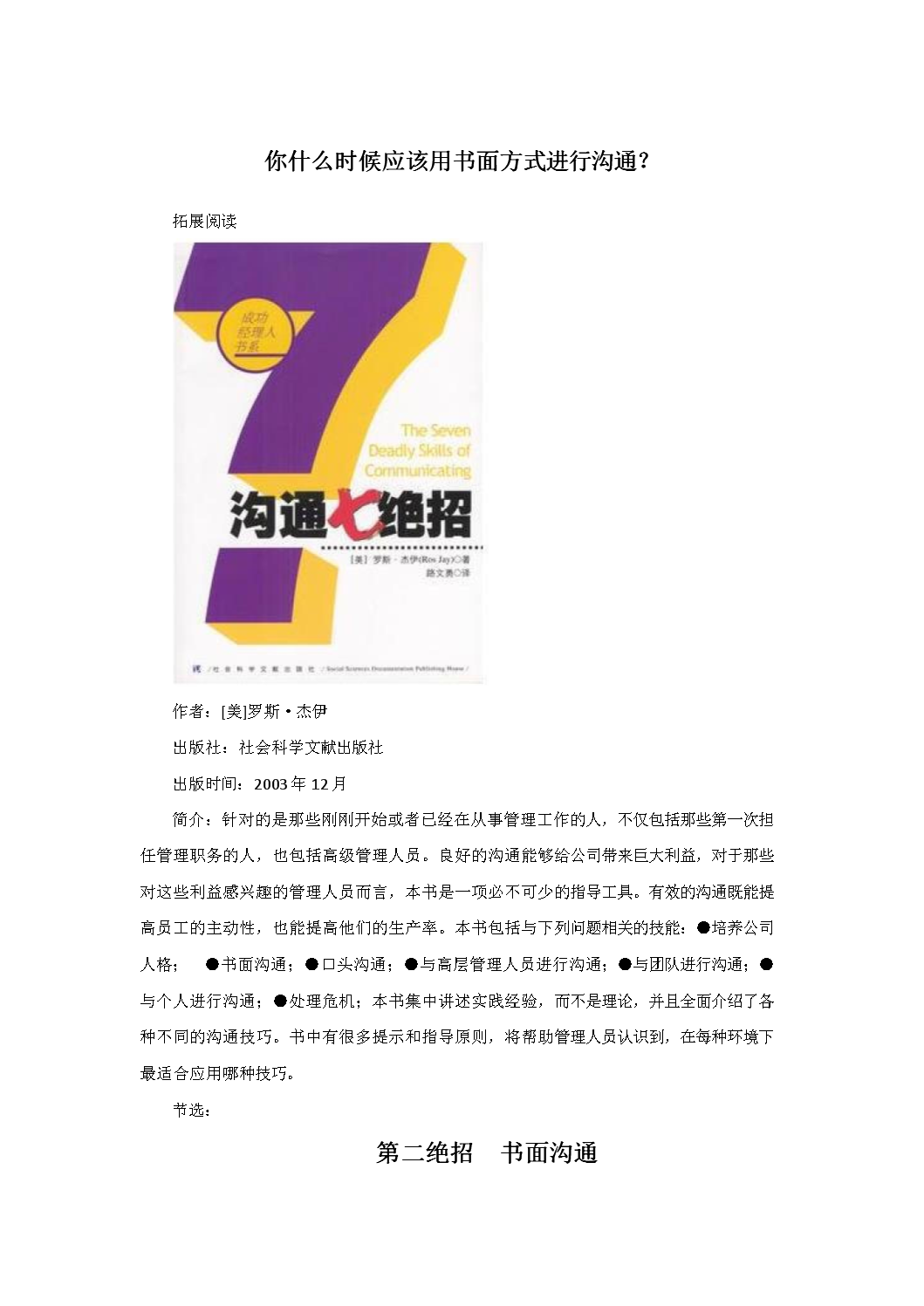 拓展阅读:你什么时候应该用书面方式进行沟通?